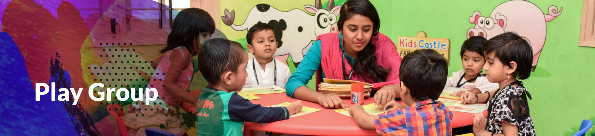 Playgroup is the most exciting yet important phase of your child. The children for the first time come out of the comfort of their parents and start to interact with the environment. During the Playgroup, we ensure that a child develops affection towards the school, makes new friends, understands student – teacher relationships and most importantly knows that there is a world outside their home. During Playgroup, no formal learning process starts in, while the learning happens through themes and play activities. We focus a lot on improving the gross muscle development during this age through Montessori mode.
